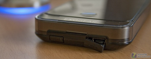 Exolife的工作原理其实很简单,它就像是一块电池,电池的正负极和iPhone 4的30针脚相接触,通过这样的方式给iPhone 4供电,不过这样的线针脚数据接口就被占据了,如果想要同步数据该怎么办呢?不用着急,在电池仓上面有一个mini USB数据接口,通过它,可以和iTunes同步,进行数据传输。