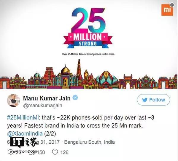 8月31日消息 ,小米副总裁兼印度总监Manu Kumar Jain宣布,小米在印度已经售出2500万部手机,也就是相当于小米在印度平均每天售出22000部手机,这个数字显然是非常惊人的。