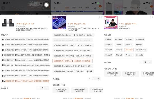 小雷上淘宝天猫以及苹果官网搜索了一番,以iPhone X为例,在淘宝上能找到150-300元不等的电池。苹果官方以及授权店的电池保外价则为513元,其中,天猫一苹果官方授权店补助后为453元。也便是说替换第三方电池,最多可以为用户省下360元,最少也能省下150元,价格差额非常感人。
