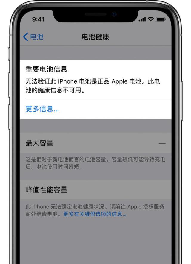 据外媒报导,iPhone XR和XS系列替换了第三方电池后,电池健康中会显现“无法验证iPhone是正品Apple电池”,同时,iPhone的电池健康信息也不可用,最大容量无法显现。