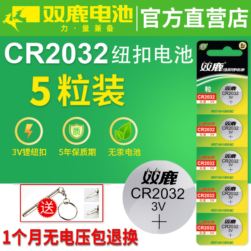 双鹿纽扣电池CR2032/CR2025/CR1632/CR2016锂电池3V主板遥控器电子秤汽车钥匙通用体重秤计算器小米盒子电池