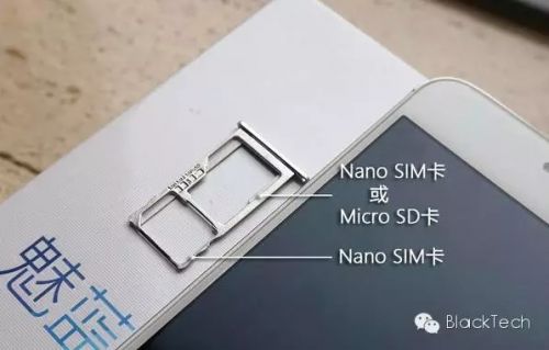 魅蓝Note 3延续以往与或卡托的设计,除了一个默认为Nano SIM卡托外,另外一个卡位可让用户自由选择是Nano SIM卡或者Micro SD卡。