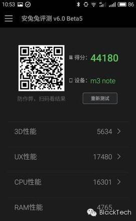 黑君的这台Note 3跑分结果是44180分,在安兔兔的排行榜里被一大票骁龙820的新旗舰刷榜到了10名开外。
