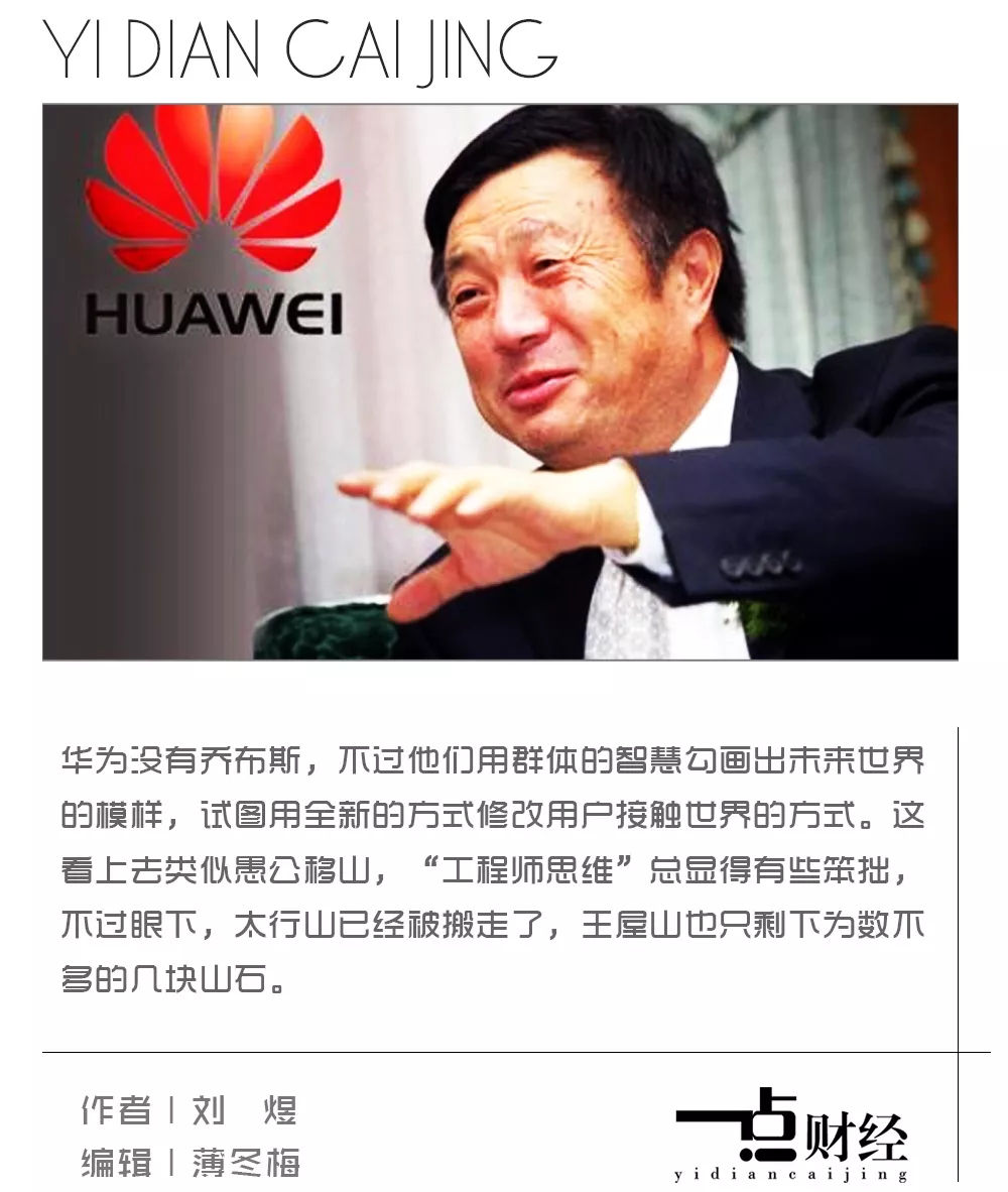 华为没有乔布斯,不过他们用群体的智慧勾画出未来世界的模样,试图用全新的方式修改用户接触世界的方式。这看上去类似愚公移山,“工程师思维”总显得有些笨拙,不过眼下,太行山已经被搬走了,王屋山也只剩下为数不多的几块山石。