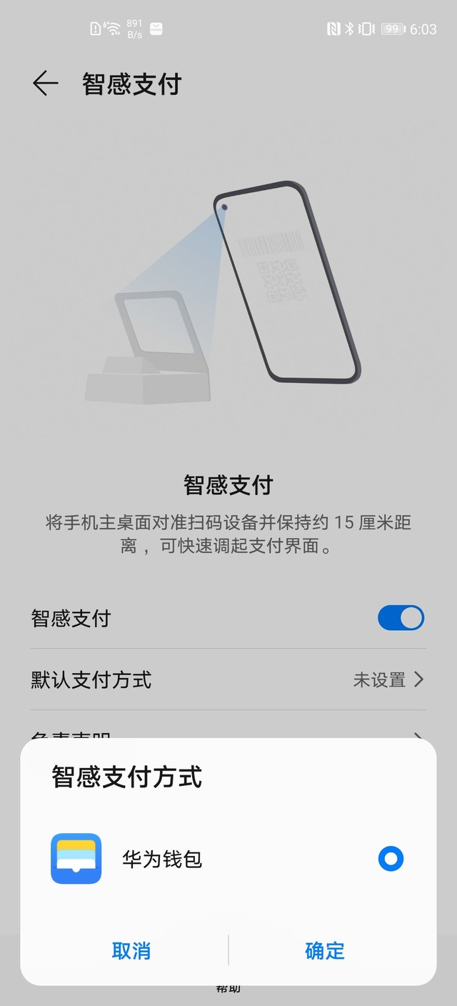 华为Mate40加入了全新的“智感支付”(开启路径为:设置-辅助功能-智感支付)。这项功能主要是通过前置摄像头自动识别扫码收银机,识别后会在屏幕上弹出付款码,付款流程一气呵成。简化实际的付款流程,便捷购物体验。