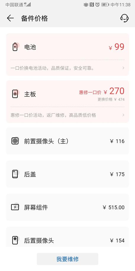 于是笔者找到一家华为官方售后网点进行维修,向客服人员说明情况后,被告知因为后壳已出现掉漆,拆开后盖可能加剧掉漆情况,为了更换电池笔者只能答应。但有个好消息,每月第一个周末会有优惠活动,算下来换好一块电池仅需61元。