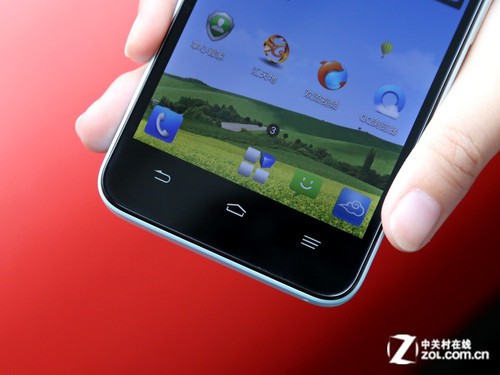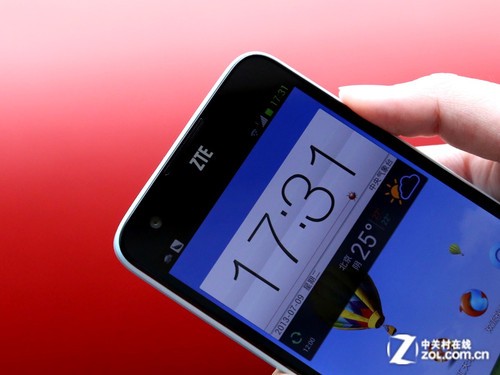 中兴GEEK正面采用了黑色面板,屏幕上方的区域比较窄,安置了扬声器与ZTE的logo之外,有没有太多空间了。我们在logo左侧可以看到这款产品的100万像素前置摄像头,搭配我们稍后将介绍的美图应用,还是很适合的。屏幕下方的设计就比较常规了,三个Android按钮,反应很迅速。