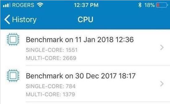 有些旧款iPhone用户反映,更换电池后,只提升了20%到30%的运行速度。但佩尔表示自己极为幸运,在一款速度检测应用Geekbench中,她的iPhone换电池后的测试分数翻了一倍。换电池前,她的手机单核跑分是784分,多核跑分是1379分。