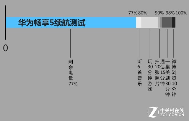 续航测试通话几乎不耗电下面正式开始华为畅享5的续航测试。本次续航测试使用我们制定的测试标准,共包括从娱乐影音到通线项连续测试,测试时间大约为2小时15分钟。我们制定的测试标准按测试顺序依次为:微博浏览10分钟、一集美剧(约30分钟)、通线%电量开始测试,每个阶段的测试结束后分别记录当时剩余电量,并在最后测试结束后给出分析结果。