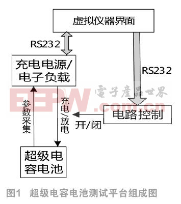 的测试平台,通过该平台可以对具有超级电容的电池、电池组进行充放电测试,并实时给出其电压、电流、功率、容量、