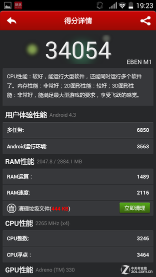 最后就是性能测试了,对于一款主打商务的智能手机来说,少有像E人E本M1这样配置高且全面的。它不仅内置2.3GHz的骁龙800四核处理器,其运行内存也是达到了目前最高的3GB规格。而其他屏幕显示,拍照方便也都是旗舰水平。接下来我们也是在常用的四款跑分软件上对该机进行了测试,下面是测试结果。