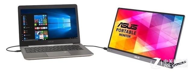 上图展示的是华硕的一款MB16AC便携式Type-C显示器,由于其比较典型,本文也将多次提到它。相比传统显示器,它的特点在于通过Type-C实现了对显示器的供电和显示输出合二为一,从而使得笔记本在户外场景也可以无需供电,就可以增加一个显示屏。因而用户只需要一个MB16AC、一根双头Type-C的数据线(最好是使用显示器自带的)以及一部Type-C口支持显示输出功能的笔记本就可以解决。这个场景同样适用于Switch游戏机外接显示器。