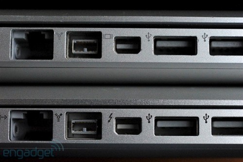 前后,代号Light Peak的英特尔ThunderBolt接口发布。其实我更愿意叫他“雷电标准”,因为实际上其接口形状与笔记本常见的miniDP视频接口是一样的。而雷电接口也确实是PCIe+DisplayPort+USB的结合体。当时初代雷电接口带宽达到了双向各10Gbps,仅仅达到了目前USB3.1 Gen2的带宽。可是在当时,USB2.0接口铺天盖地的情况下,1GB/S速度就是“嗖嗖嗖”的概念了。