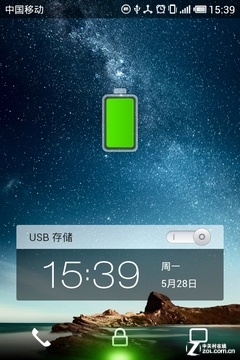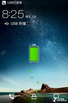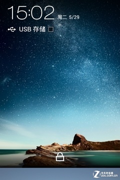 我们在还未进入系统之时的锁屏界面就能感到细微的变化,充电状态下依然是气泡式灵动的充电效果动画,而“时间”跟“USB存储”这两项内容都被移到了左上角;解锁方式仍然为滑动,除了解锁,左右的“电话”与“信息”键也能够滑动进入相应的功能,只是在 Flyme OS 1.0当中只解锁时两边的图标就会自动飞出不再可用。