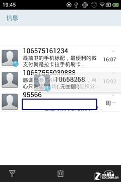 信息的风格变得更加清新,当你需要删除短信时,除了点选删除,直接按住拖至底下的废纸篓就可以直接删除掉,非常的容易。废纸篓的左边是“过滤”选项,也就是说拖至这里的信息会被 Flyme OS的拦截机制自动识别并且拦截相似来源的信息。