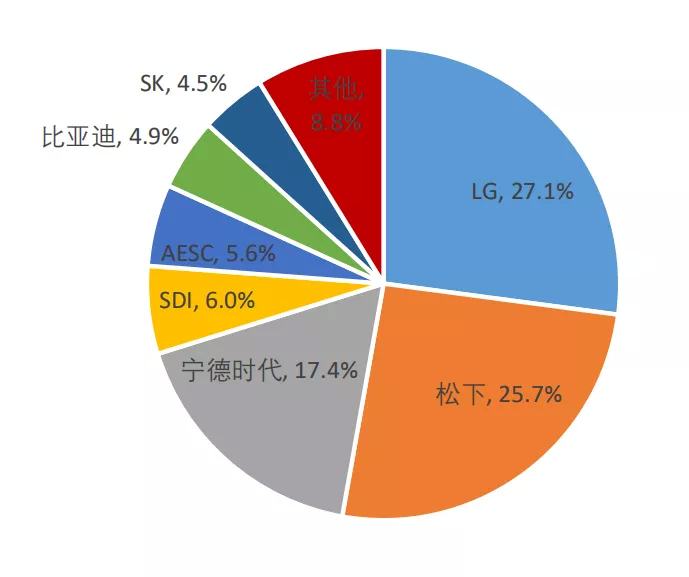 LG占比有望继续提升。2020年Q1,LG、松下、宁德时代、比亚迪全球市场占有率分别为27.1%、25.7%、17.4%、4.9%。LG占有率同比增速达153.3%,增长迅猛;松下维持其一贯的稳健风格,排名仍为第二,市占有率同比小幅增长;国内企业宁德时代、比亚迪分别位列第三、第六,下滑显著。这主要是由于一季度受公共卫生事件影响,国内的新能源汽车市场跌入谷底。而欧美公共卫生事件爆发较晚,一季度受影响较小,新能源汽车市场还出现一定程度的增长。