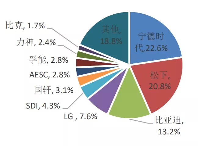 销量与带电量双驱动,动力电池出货量逐年提升。考虑到2022年纯电动乘用车平均续航里程有望达到500km,百公里电耗按13kWh计,预计其平均带电量约为65kWh,2019-2022年的年复合增长率约为11.3%。结合新能源汽车销量和单车带电量,装机比(动力电池装机量瓦数/动力电池出货量瓦数)按近两年平均值87%计,预计 2020年动力电池出货量约为70.8GWh,与2019年基本持平。预计2022年动力电池出货量有望达到120GWh,未来2年的年复合增长率约为30.0%。