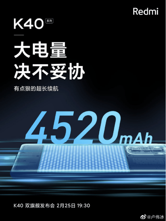红米K40系列:线mAh电池值得期待