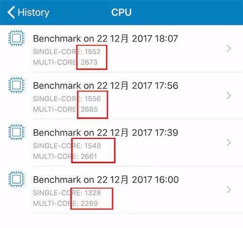 同时,为了避免结果的偶然性,在新电池状态下,我们连续进行了 3 次测试,单核成绩均维持在 1550 分左右,多核成绩超过 2660 分,均高于旧电池对应得分。