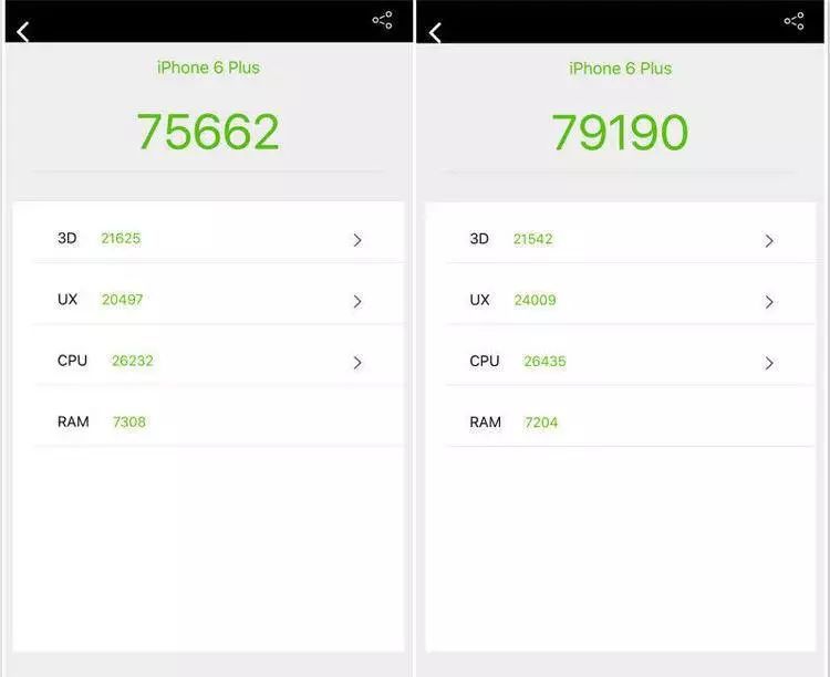 总结来看,无论是 GeekBench 4 还是安兔兔,最终给出的数据均显示,在为 iPhone 6 Plus 更换了新电池之后,其跑分数据有了一个明显的提升,结果和外媒所做的测试是一致的。