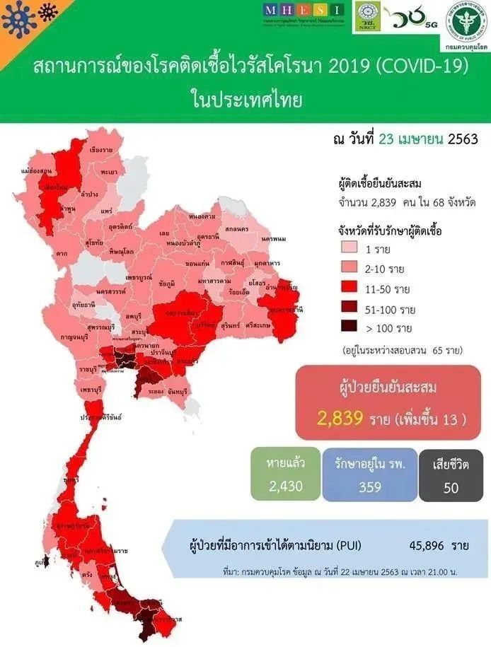 根据泰国新冠肺炎疫情防控指挥中心的数据来看,过去一周以来,泰国确诊病例人数呈现逐步减少的趋势,其中有32个府在过去14天内没有任何一例确诊病例报告。Covid-19形势管理中心发言人TaweesilpVisanuyothin博士说,由于人们在过去7-14天内积极配合疾病防控措施,现在每天新发病例的数量很少。