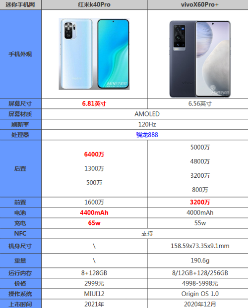 今天小编就为大家带来红米K40Pro和vivoX60Pro+的详细参数对比,这两款手机哪一个更值得入手,一起来看看吧