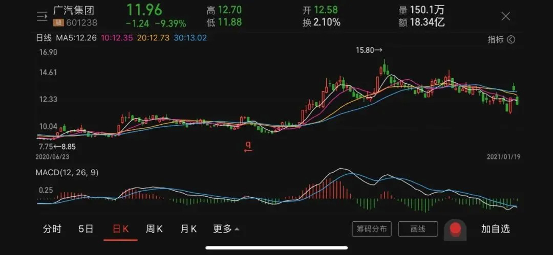 在这一系列质疑的影响下,广汽集团在本月15日原本高涨19.5%的港股也在昨日收盘后收跌5.1%,报8.18港元/股;A股股价甚至大跌9.39%至11.96元/股。