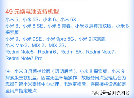 此次参与半价换电池的机型多达10几款,包括小米9系列、小米8系列、小米6系列、小米MIX2系列、Redmi Note 5/7系列等机型。其中难度比较大的几款透明探索版,会直接寄到小米维修中心,完成更换之后,邮寄到用户的指定地点。这波操作可以说非常良心。