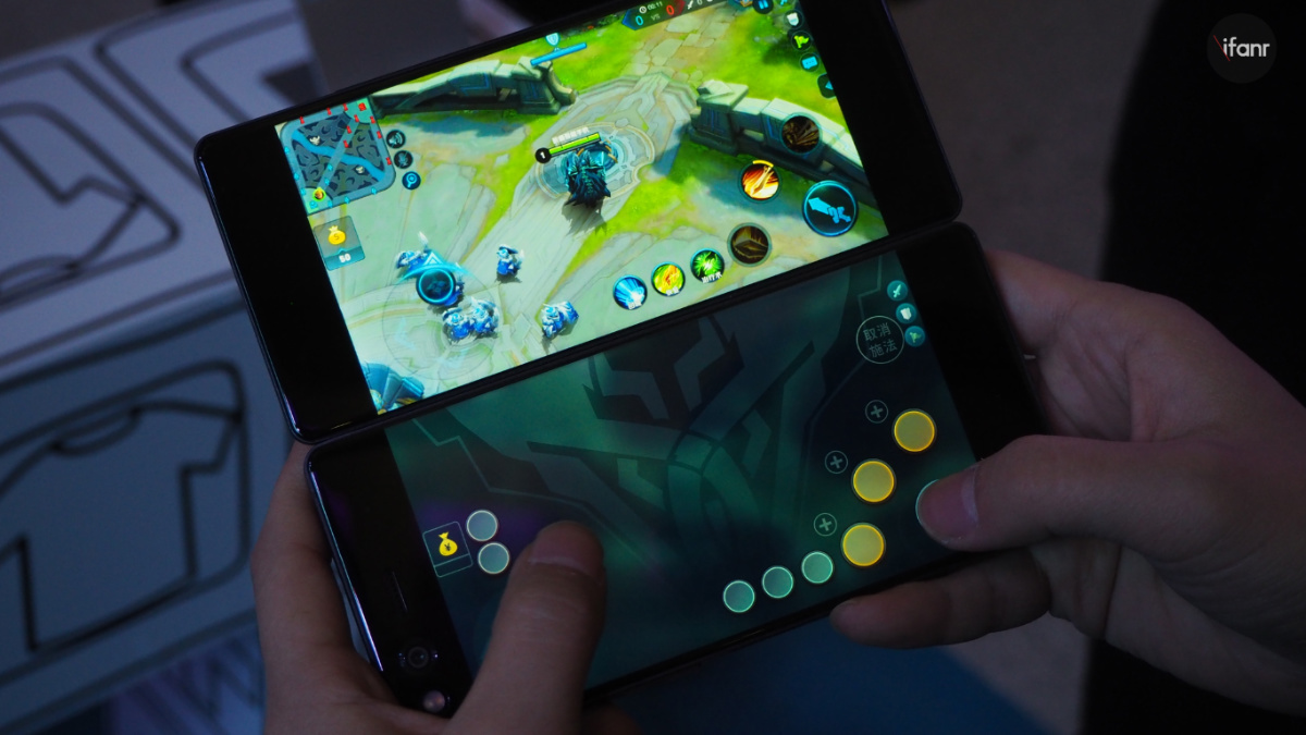 此外,Axon M 的双屏设计让游戏也变得更有趣,未来在这台手机上玩王者荣耀的时候就可以在一个屏幕上显示战场,一个屏幕上显示各种功能键,类似于通过手柄打王者荣耀。