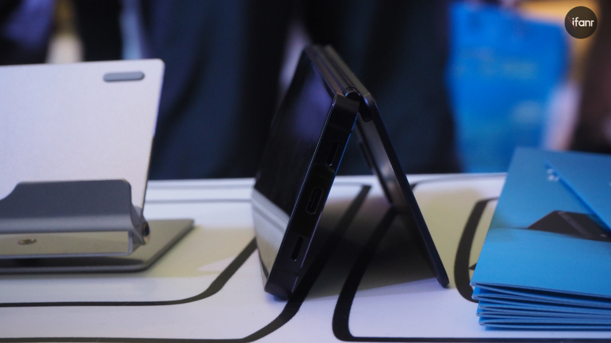 但当把两块屏幕「合二为一」后,视觉效果上还是能带给人一些新鲜感。不过,两块屏幕是由铰链进行连接的,不管是主屏还是副屏都留有各自的边框,因此在组成一整块屏幕后,会留下一个不太友好的黑线。