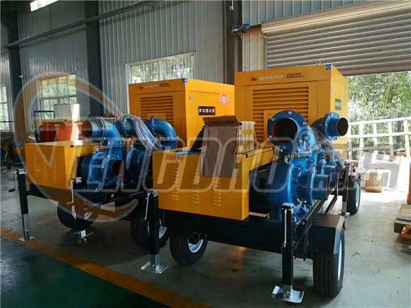另外新型真空柴油机水泵机组真空装置有两种供用户选择一种真空泵系统依靠柴油机轴的动力用皮带轮带动使其真空泵随柴油机自吸泵一起运行、整个系统一直处于抽吸真空的状态让自吸泵自吸性能更加稳定所以它被称为不停机的真空柴油机水泵。另外一种是可以自动停机的真空柴油机水泵机组,当监测到有水被真空泵吸上来时真空泵通过离合器自动停机,该款柴油机水泵机组价格相对更高一点,两款真空柴油机水泵机组自吸性能一样。