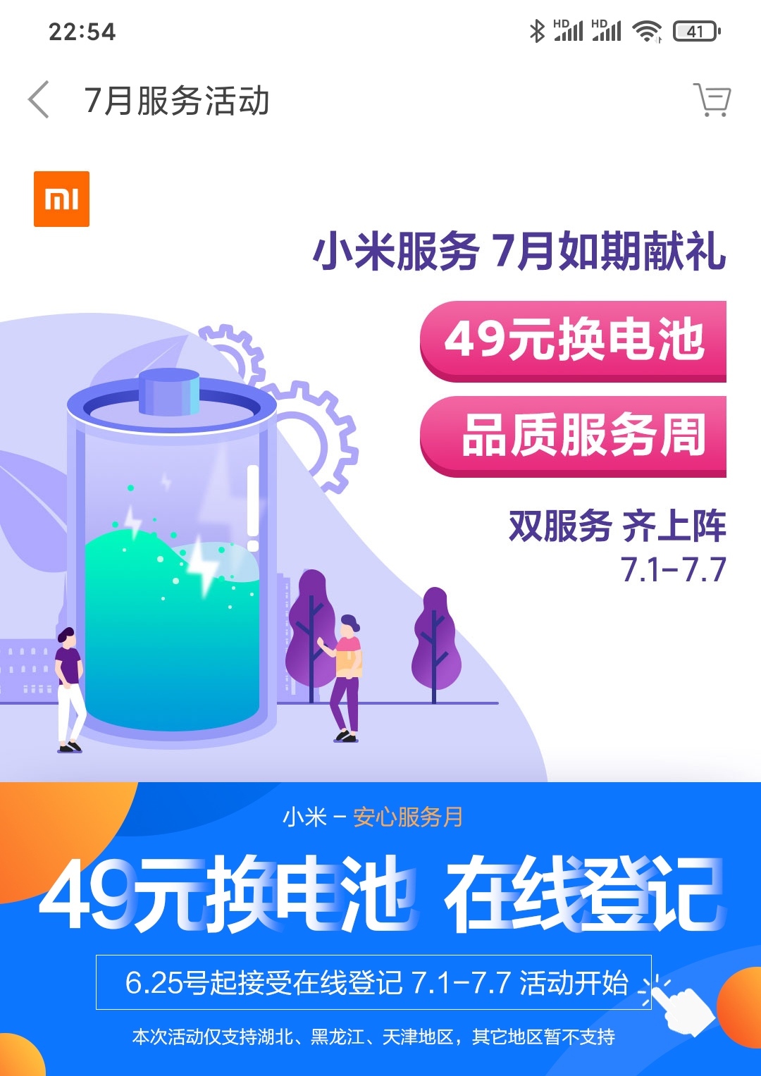 49元换电池小米安心服务月仅限湖北、天津、黑龙江三地