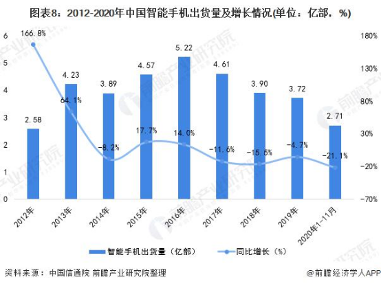 近年来,中国手机出货量不断下滑,增长情况出现不同程度的放缓。根据中国通信院数据显示,从2017年到2019年中国智能手机出货量分别同比下降11.6%、15.5%、4.7%,2020年1月-11月同比下降21.1%,创历史新低。不难看出,随着中国智能手机市场的日趋饱和,消费者对新设备的需求放缓。推陈出新已经不是占领市场的核心战略,做好服务、提升体验才是目前赢得市场的关键。