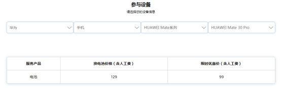 还是以我用了一年半的华为Mate30Pro为例,现在只需不到100元能换一块官方原装电池。换过电池的人都知道,那种感觉就像换了个新手机一样。这个活动相当于最低79元换个“新手机”,它不香么?