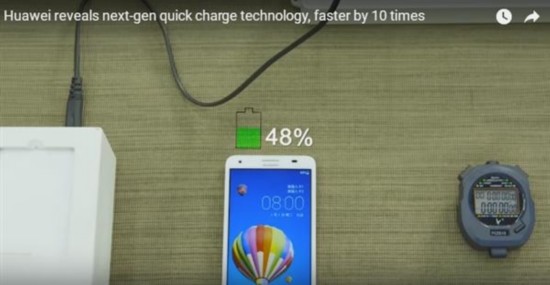 隶属华为公司的瓦特实验室目前正在研发新一代快速充电技术,这一技术可以在短短5分钟内将手机电池的电量提高到48%。快速充电技术在开始充电50秒左右开始发挥作用。可以看到,该技术中的电池相较普通手机电池具有更多的连接器。