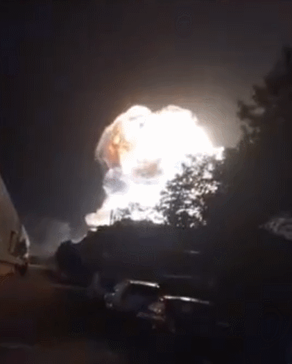 从网传视频来看,爆炸发生时,当地已进入黑夜,随着一声巨响,爆炸的火焰冲上天空,并且形成了一个“蘑菇云”,威力巨大。