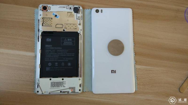 底部撬开之后,然后是两侧,小米note的后盖和机身是卡扣连接,另外后盖与机身还有双面胶粘接,所以拆的时候不要用蛮力,拆一次下次就会了。