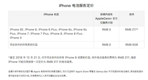 据悉,苹果是在iPhone 6/6s降频门大规模爆发后正式对电池更换价格做出调整,预计将持续到2018年12月31日。