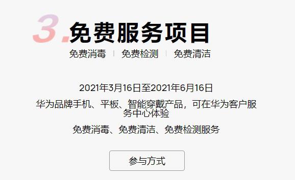 华为官方今日发布消息,将于即日起至 2021 年 6 月 16 日开启服务感恩回馈季活动,提供备件 8 折、免费消毒清洁、电池优惠换新等内容,覆盖范围包括手机、平板、笔记本电脑、智能穿戴产品。值得注意的是,荣耀品牌的相关产品同样参与该活动,享受相同优惠,但不包含最新的荣耀 V40 机型。