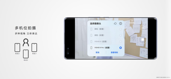 得益于HarmonyOS 2的分布式技术加持,华为nova9系列支持多机位模式,能跨越单设备限制。可以在主摄设备上选择不同机位的设备进行录制或直播,一次性拍出特写、中景、全景等多角度画面,呈现更多画面细节。此外,在或合影时,可以用一部手机作为摄像头,另一部手机作为预览显示器,拉长创作距离,实现遥控拍照体验,这样,即使是单人进行直播或Vlog拍摄也能游刃有余。