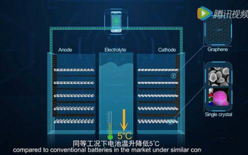 据华为瓦特实验室首席科学家李阳兴博士指出,石墨烯基高温锂离子电池技术突破主要来自三个方面:在电解液中加入特殊添加剂,除去痕量水,避免电解液的高温分解;电池正极选用改性的大单晶三元材料,提高材料的热稳定性;同时,采用新型材料石墨烯,可实现锂离子电池与环境间的高效散热。