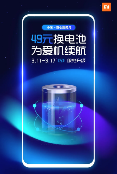 iMobile手机之家,3月12日消息 日前,小米售后官方宣布在3.11—3.17期间,小米将开展「49元换电池 为爱机续航」活动,用户仅需花费49元(已包含电池价格+人工费用),就可以为爱机更换电池,期间不会收取其他费用。