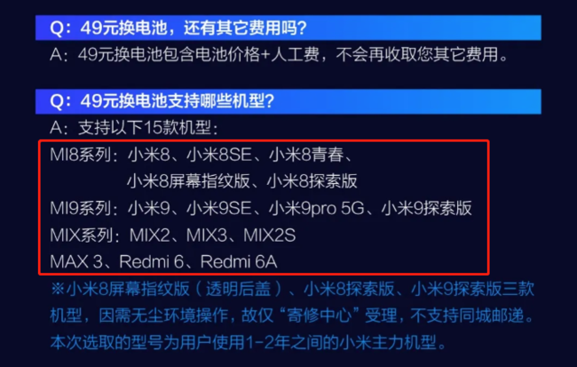 小米售后推出49元换电池活动 快看看你的手机包含其中吗