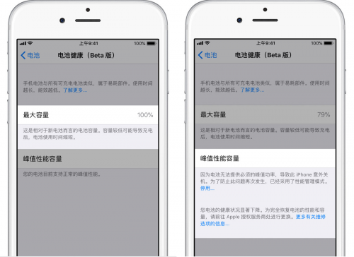 苹果官方认为,正常电池在正常条件下运行,当iPhone充电周期数达500时,理论上手机电池容量将为初始容量的80%左右。而一旦低于80%,手机电池容量就很难支撑手机达到峰值性能,从而出现降频现象、影响使用体验。