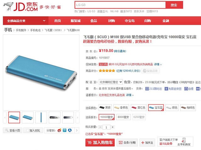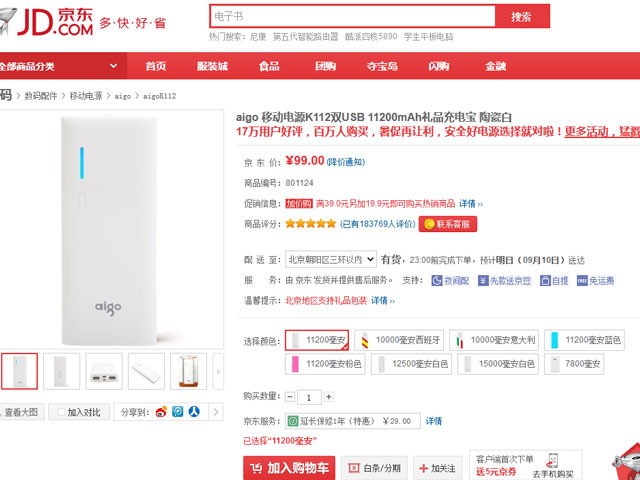 品能PN-913移动电源拥有标称电芯容量高达10000mAh,机身体积不大,用户们可以很方便的携带着,随时可以为缺电的手机、平板电脑等设备补充电量。侧面配备了两个标准USB输出接口,用户们可以很方便的进行充电使用。目前这款移动电源在京东商城仅售59.9元,感兴趣的用户可以点击进入京东商城购买页面查看一下。
