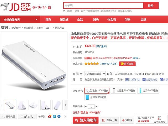迪比科E8移动电源拥有较大的电芯容量,使用聚合物电芯,具备10000mAh标称电芯容量,能够为设备带来长时间的充电支持,大大延长了手机、平板电脑等数码设备的使用时间。方形机身方便出行时携带,平时可以将其放在包里进行携带。目前这款移动电源在京东商城的售价为69元,感兴趣的用户可以点击进入京东商城购买页面查看一下。