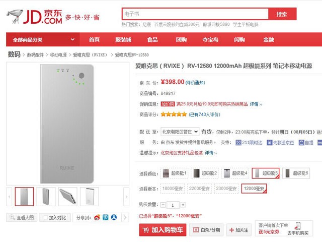 爱唯克思RV-12580移动电源是一款可以为笔记本电脑提供充电支持的产品,内部使用大容量聚合物电芯,标称电芯容量高达12000mAh,可以大大延长智能手机、平板电脑、笔记本电脑等设备的使用时间,确保出行用户们的日常充电使用。目前这款产品在天猫商城的售价为398元,感兴趣的用户可以点击进入京东商城购买页面进行查看。
