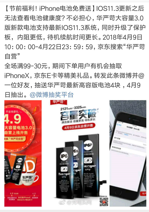 ? ? 华严苛3.0电池目前在京东自营有售,并且支持ios11.3系统,同时升级了保护板,内阻更低,待机时间更长……是不是如此我们测试一下。