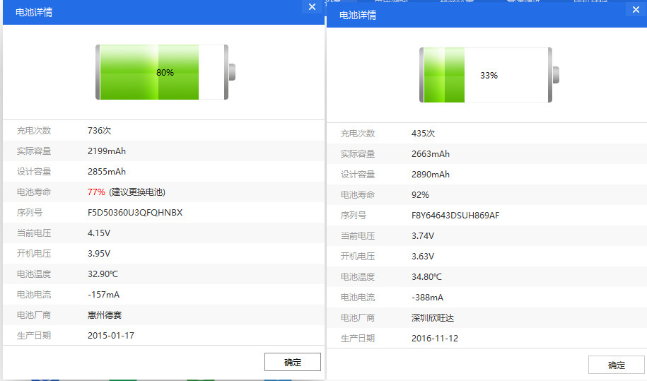 ? ? 第四,软件检测循环和容量,电池电压等。电池循环三次之后电池容量就开始下滑,寿命衰减。那么这种电池很有可能是虚标的。软件检测不一定准确,但是参考意义还是有的。不过也有一些刷数据的电池,软件根本无法检测出来,这种时候只能靠你自己的使用体验来感觉了。