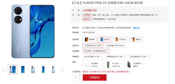 根据华为官方商城显示,华为P50E将于明天上午10:08正式开售,其中8GB+128GB版售价4088元,8GB+256GB版售价4488元。